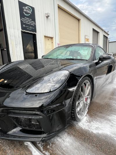exterior snow foam, decontamination, wheels & wheel wells cleaned, exterior hand washed, paint clay treatment, then topped off with a spray coating for up to 3 months protection